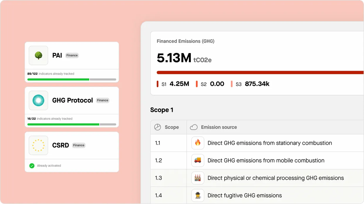 - Aligned with PCAF methodology and GHG Protocol for financed emissions reporting