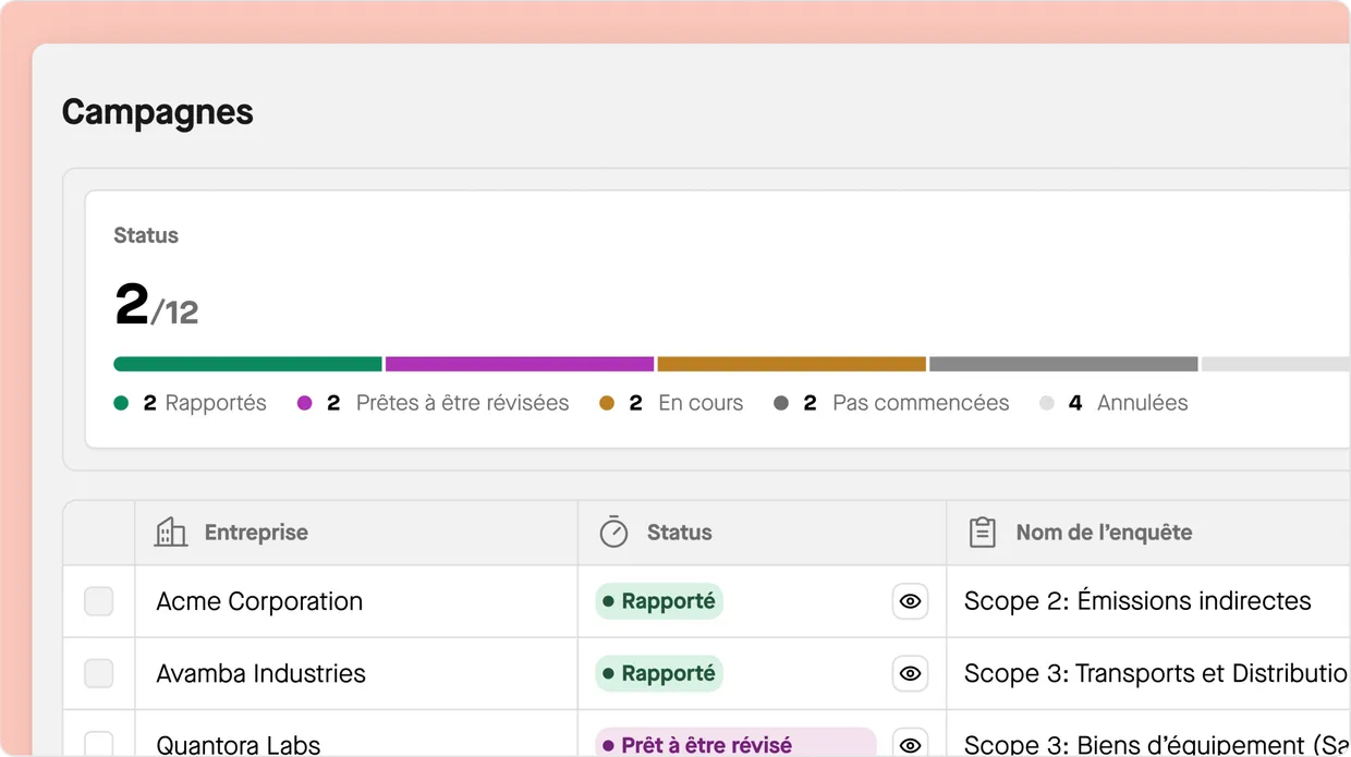 - Les entreprises en portefeuille répondent à vos enquêtes via leurs comptes Sweep pour pouvoir suivre leurs performances
