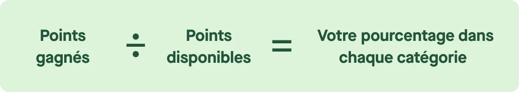 Le pourcentage que vous obtenez dans chaque catégorie va définir votre note globale.