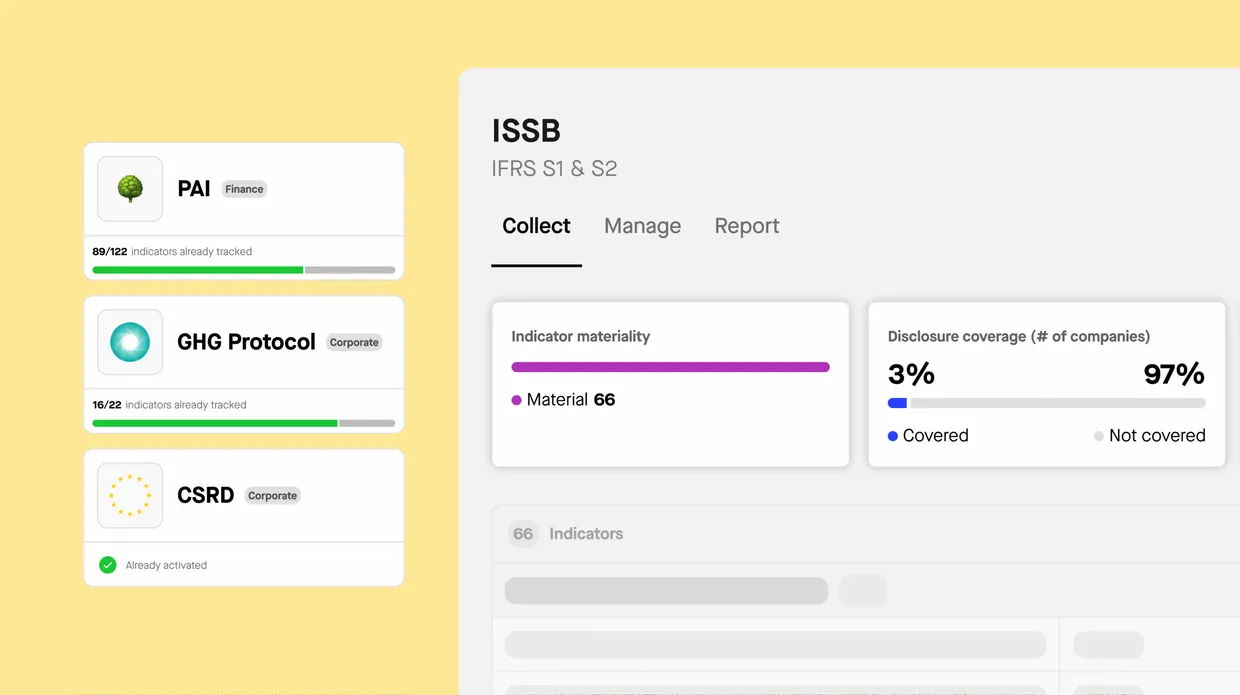 We help you report across ISSB (IFRS S1/S2), GRI, CSRD, and other major standards — all from one ESG data platform.