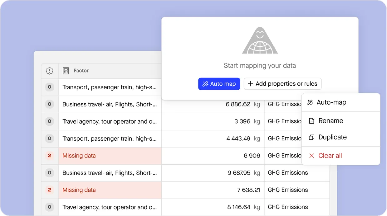 Our AI engine automatically maps emissions data, detects anomalies, and suggests improvements. Built-in data controls and custom workflows ensure your data is clean, complete, and ready for disclosure.