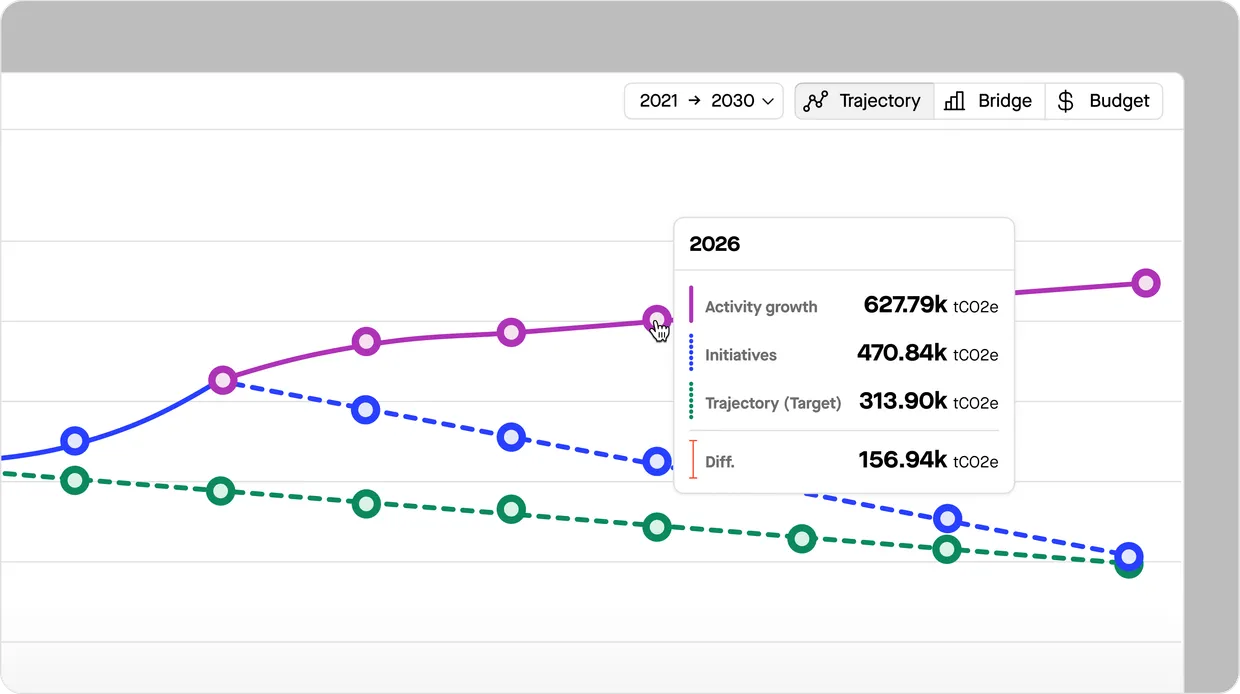 Go beyond disclosure. Use Sweep to plan and simulate decarbonization strategies, set science-based targets, and track progress on your climate risk mitigation efforts.