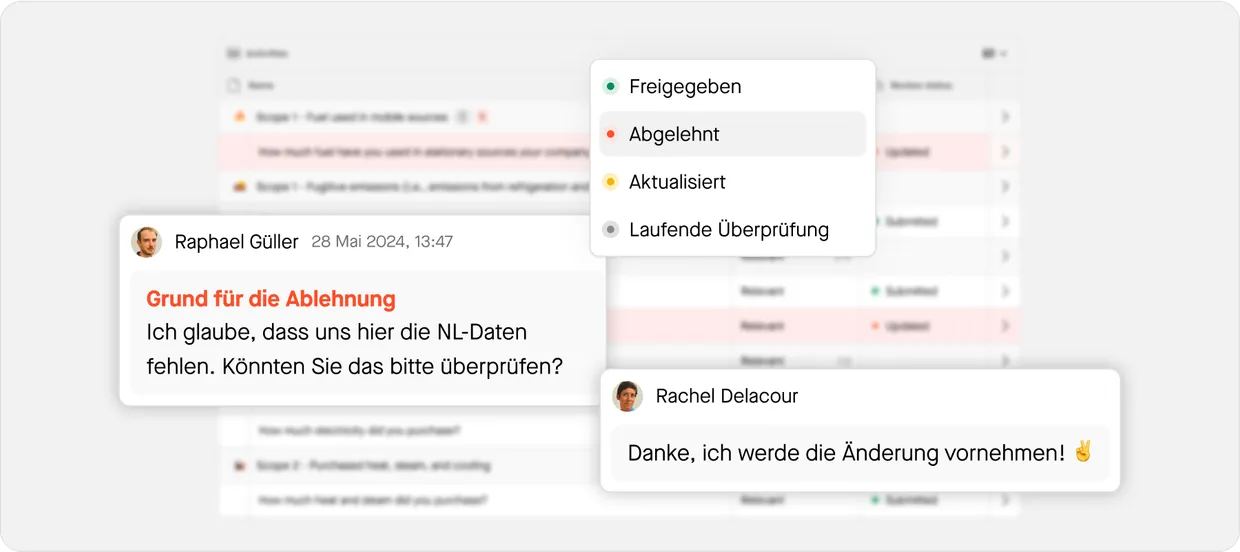 Verwenden Sie einen Validierungsprozess, um eine gesamte Umfrage oder einzelne Antworten zu akzeptieren oder abzulehnen. Fügen Sie Kommentare und Dokumente hinzu, um Antworten zu unterstützen und Erklärungen bereitzustellen.
