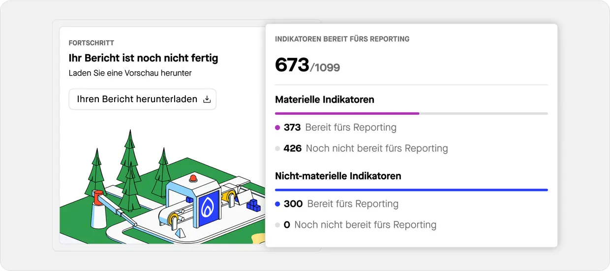 Stellen Sie Ihre wesentlichen Indikatoren zusammen, exportieren und überprüfen Sie sie im erforderlichen Berichtsformat. Kennzeichnen Sie Ihre Indikatoren für ein maschinenlesbares Format, welches für die ESAP-Plattform geeignet ist.