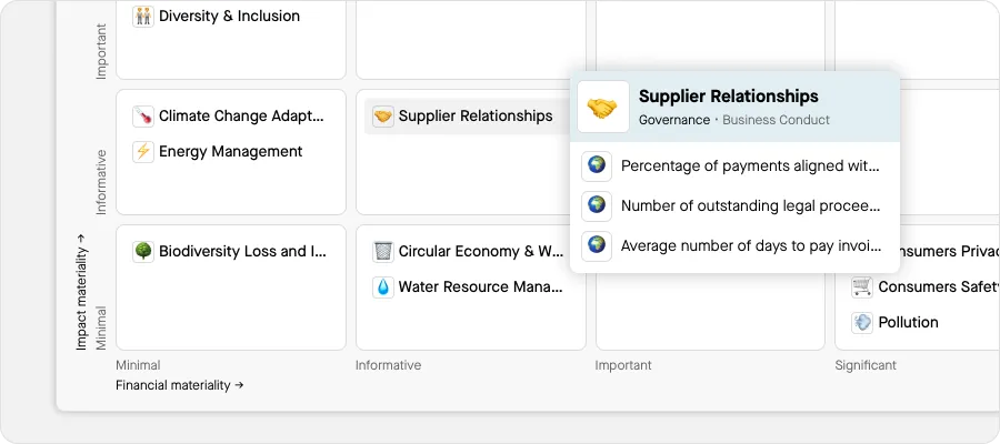 Double materiality means you’ll assess how sustainability issues impact your company’s finances, and how your operations affect the environment and society. It’s a critical part of your CSRD reporting obligations.