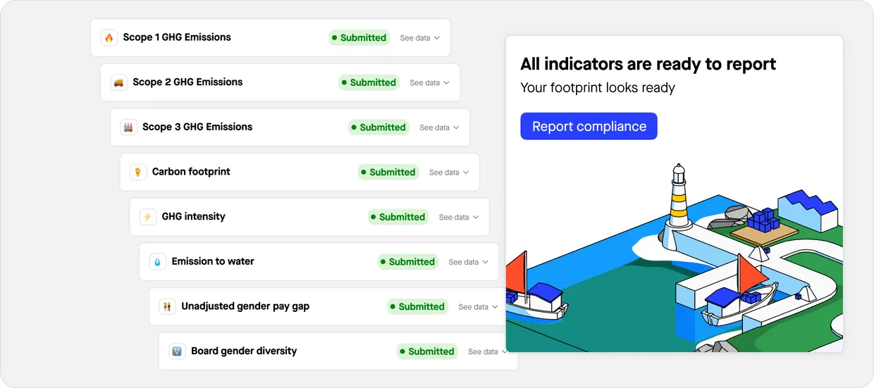 Get a live overview of your SFDR compliance progress with the mandatory metrics